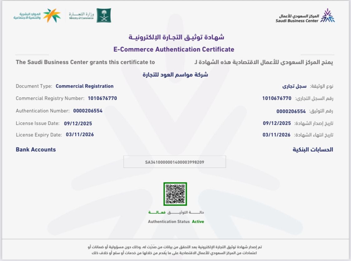 شهادة توثيق مواسم العود